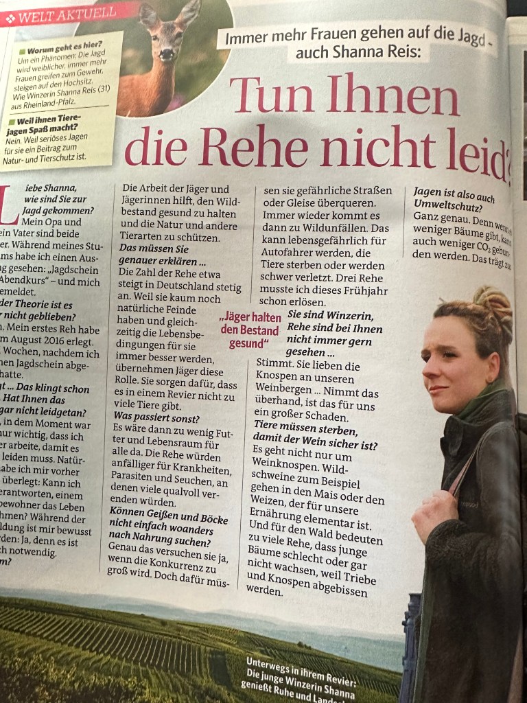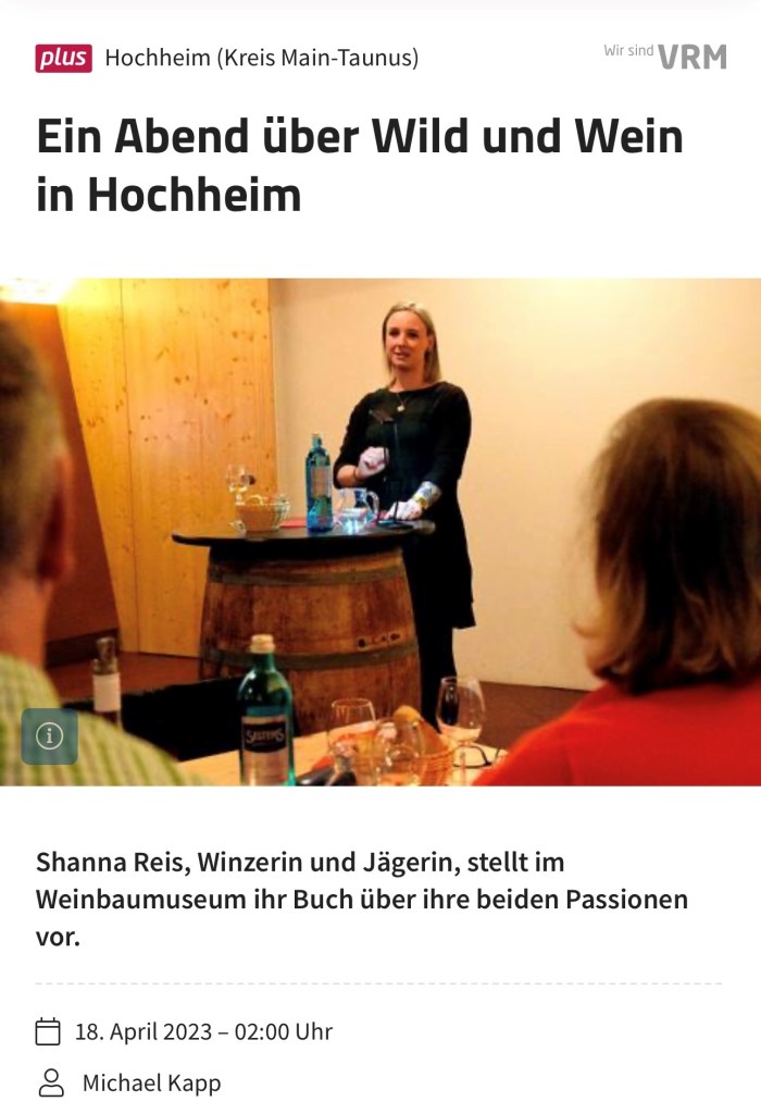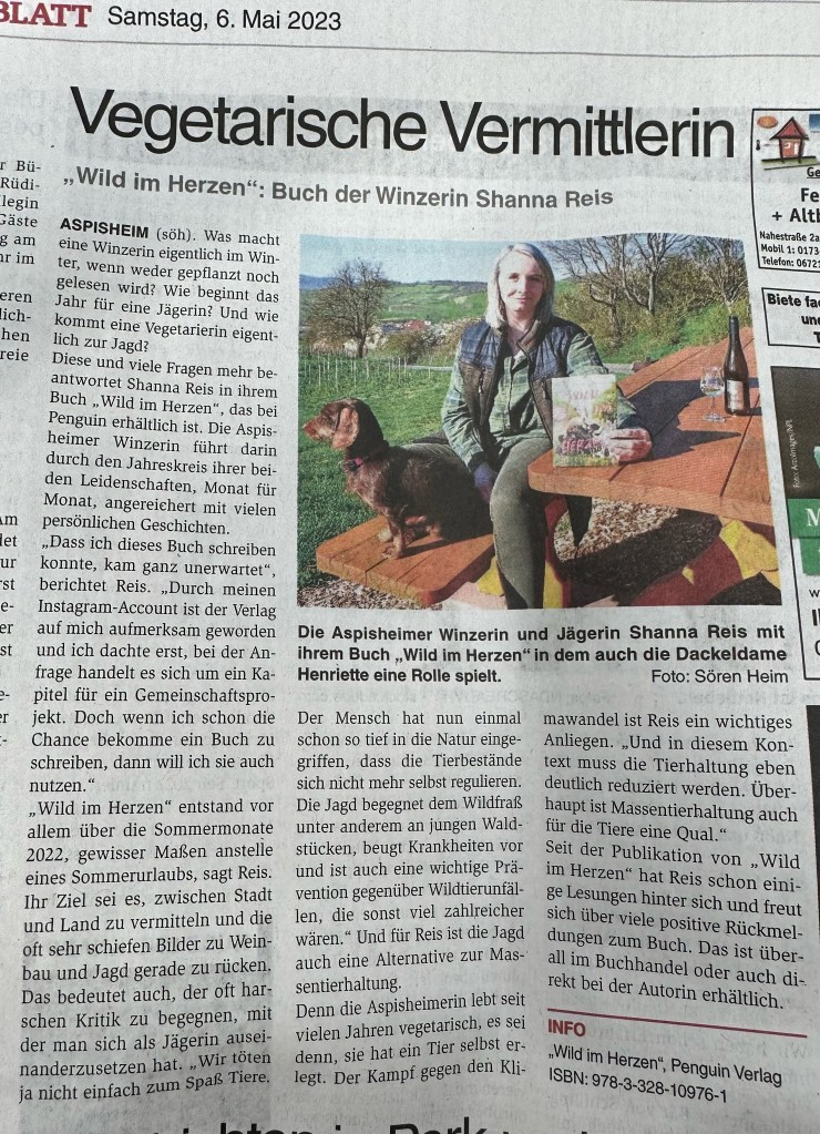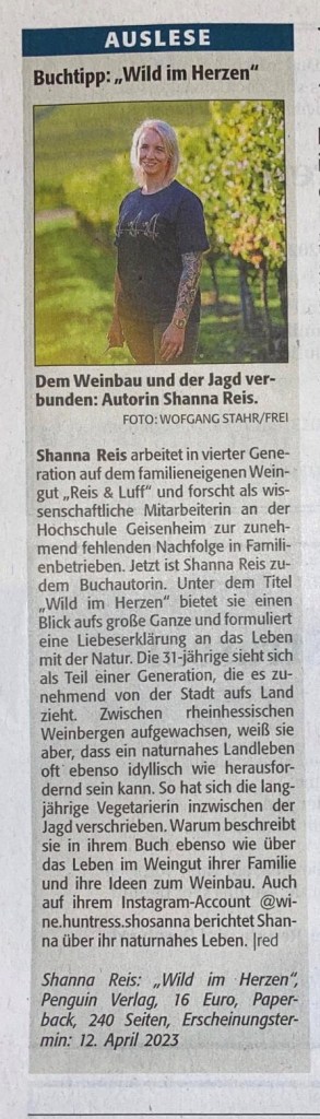 Hier geht’s zum Artikel: https://www.allgemeine-zeitung.de/lokales/kreis-mainz-bingen/bingen/binger-jaegerin-und-winzerin-publiziert-buch-wild-im-herzen-2469142