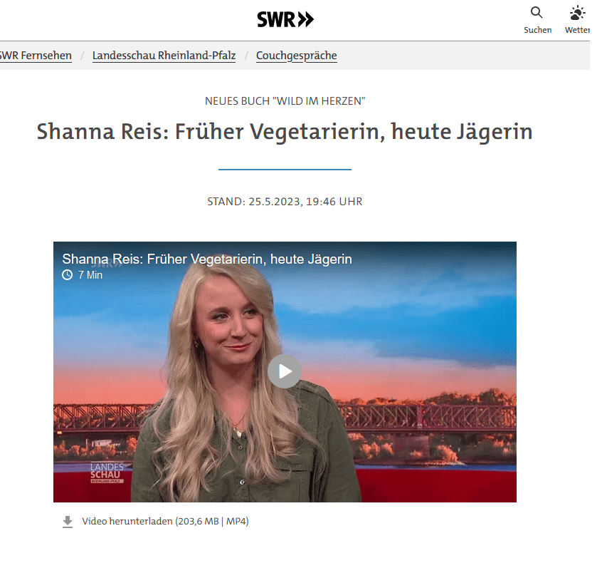 Mai 2023: SWR aktuell „Früher Vegetarierin, heute Jägerin“